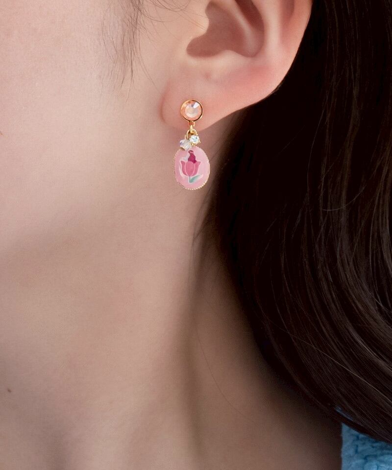 親ゆび姫の物語をイメージした水性ネイル・おとぎネイルの「ロイヤルシリーズ おやゆびひめ」に入っている『チューリップの恋』をベースカラーに使った貼るだけピアスです。